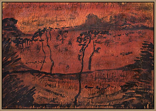 2014 - The hills behond Hermannsburg, from the Gallery's Indigenous Collection, featuring the work of Arnulf Ebatarinja, Conley Ebatarinja, Benjamin Landara, Tristam Malbunka, Albert Namatjira, Keith Namatjira, Lenie Namatjira, Maurice Namatjira, Oscar Namatjira, Claude Pannka, Gloria Pannka, Nelson Pannka, Ivy Pareroultja, Otto Pareroultja, Billy Benn Perrurle, Norman Ratara, Vanessa Splinter, Roland Uburtja, Alison Walbungara, Richard Moketarinja at the AGNSW, Sydney.